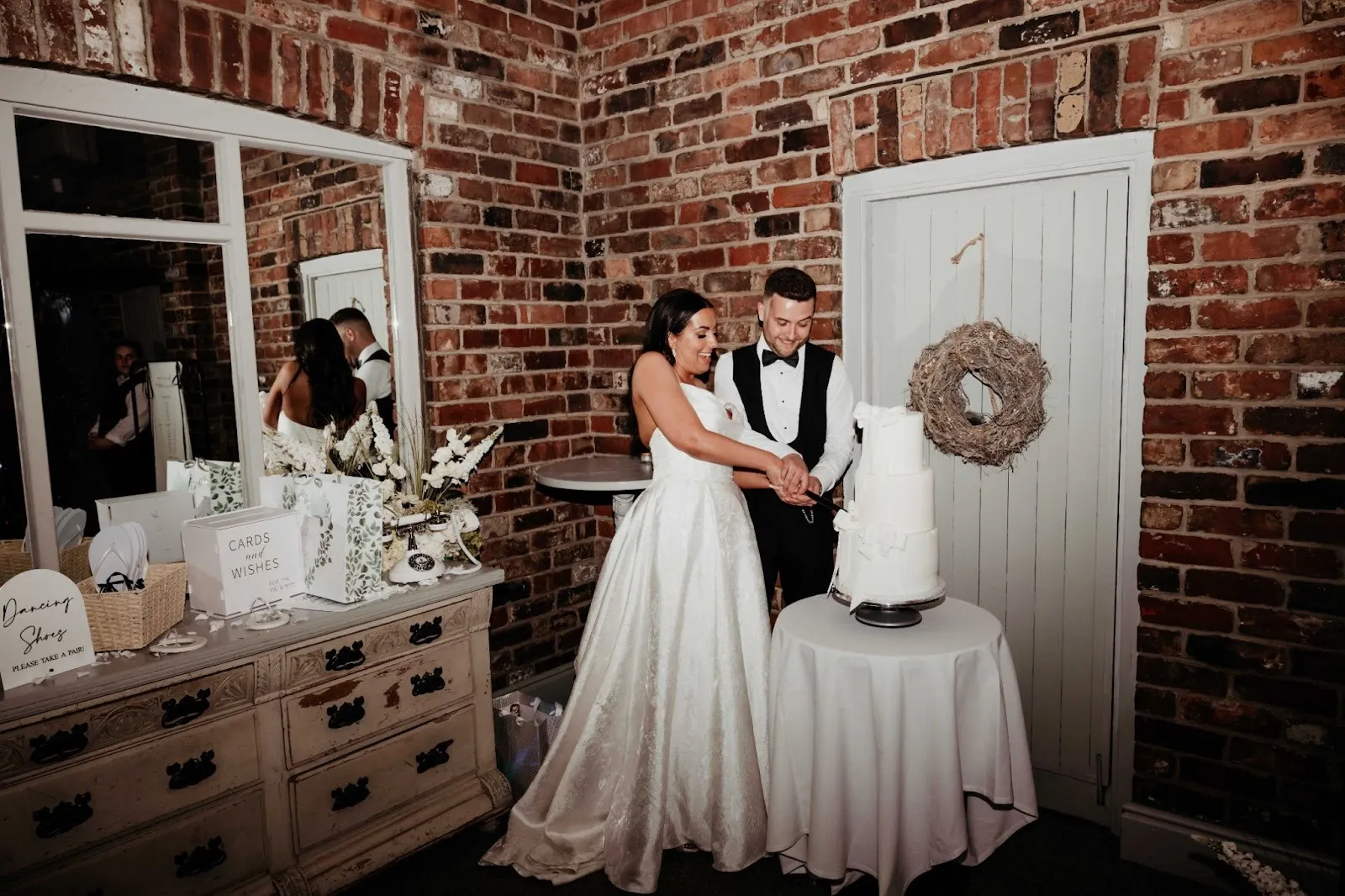 As evening guests arrived, the celebration quickly took on a lively party atmosphere. Hope and Craig cut their wedding cake later in the evening, a lovely moment shared with friends and family to begin the evening celebrations.